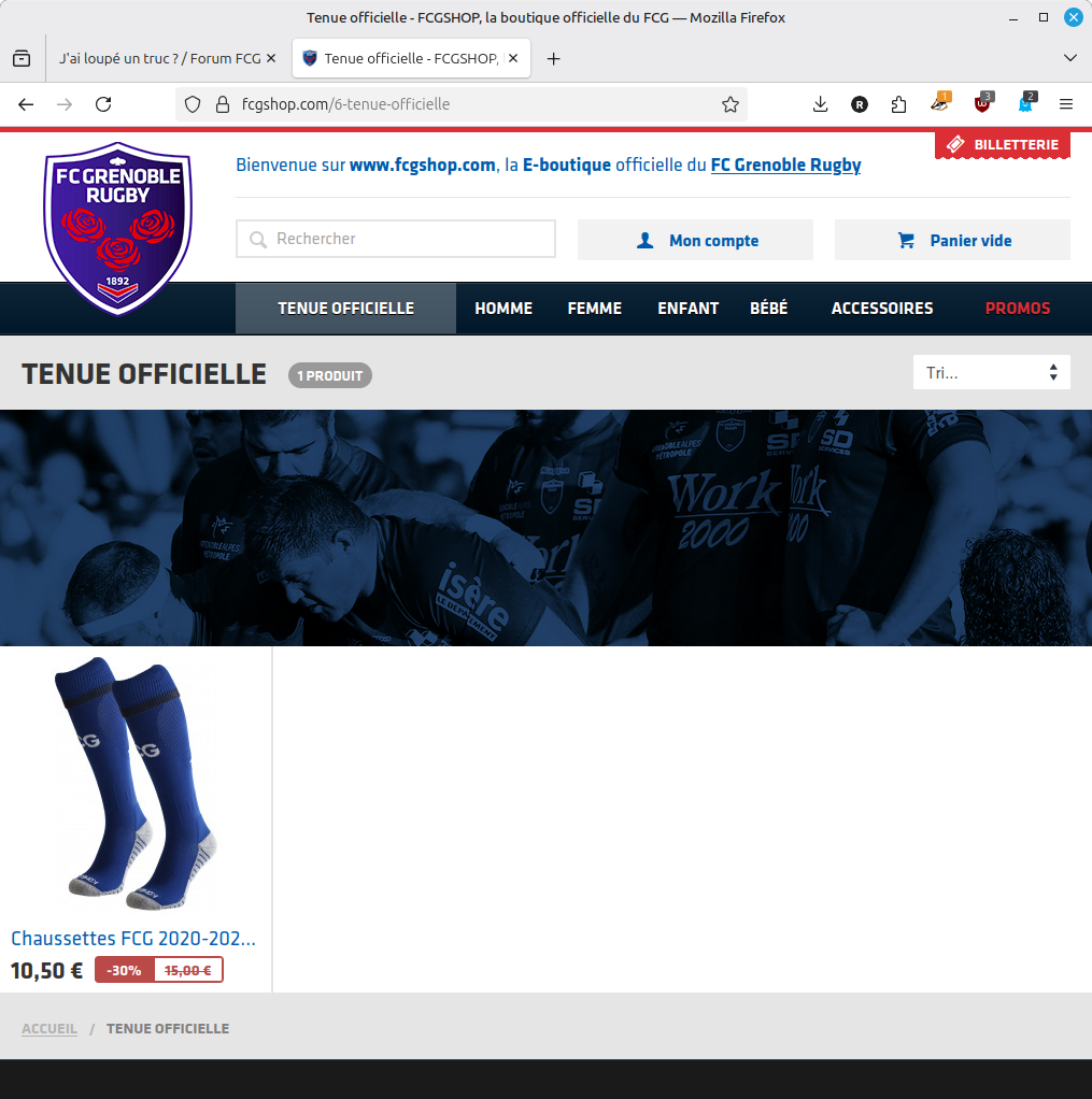 Je sais que c'est accessoire par rapport au sportif, mais la "boutique" en ligne qui affiche, depuis des mois :