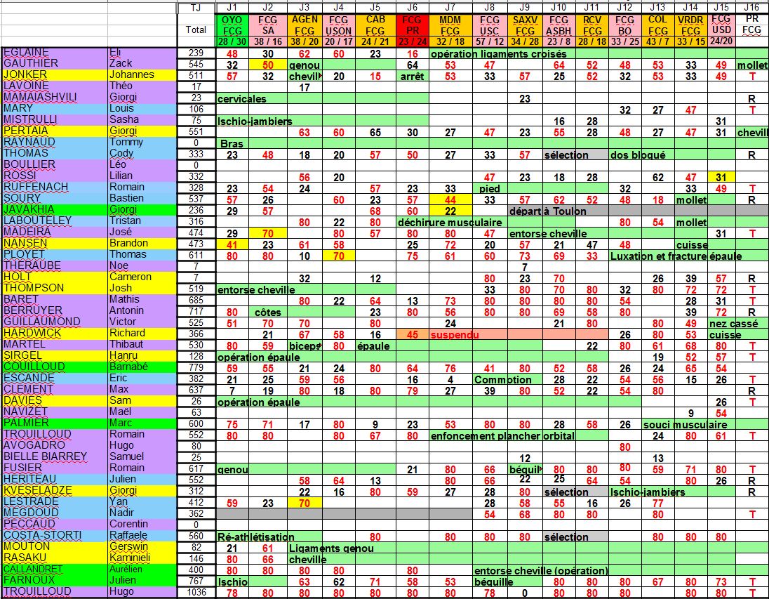 Est ce quelqu 'un peut lister les joueurs aptes hors des 23