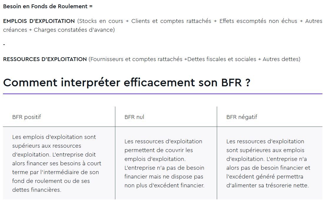 2) Signification de BFR positif, négatif et nul (lien : https://www.l-expert-comptable.com/a/37 … t-bfr.html) :
